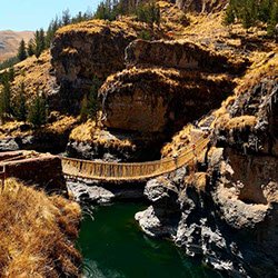 El Q'eswachaka es un puente colgante inca ubicado en el cañón del río Apurímac, en el distrito de Canas, a unos 2 horas y 45 minutos de Cusco, Perú. Se trata de una obra de ingeniería incaica y artesanía local que se reconstruye cada año y que es un destino turístico impresionante: